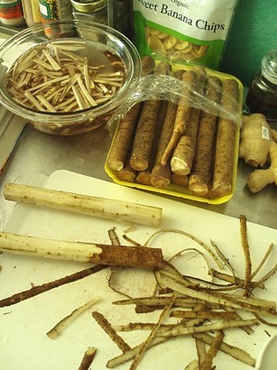 1.牛蒡我原本切成兩碗,一碗較細拿來煮湯,一碗較粗拿來炒菜,結果手忙腳亂中,不小心反過來用了。但吃起來還是蠻不錯的。