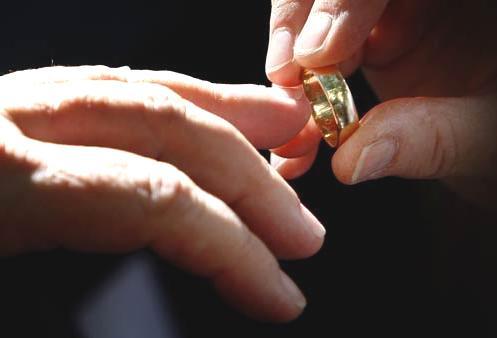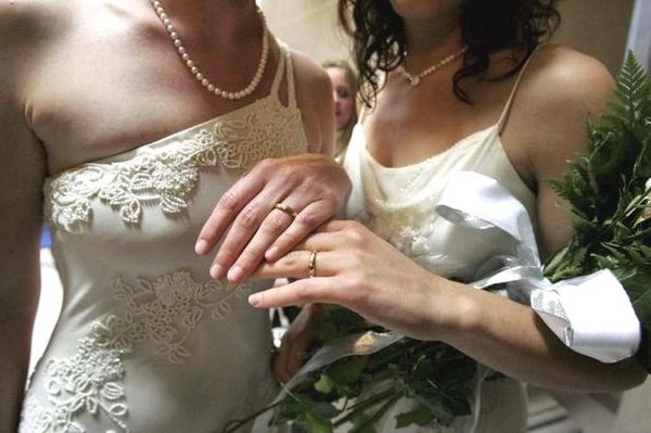 女同志 Amber Weiss 跟 Sharon Papo 結完婚之後,展示手上的戒指。