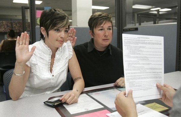 Kelly McAlister(左,長的好像 S.H.E. 的 Ella)跟女友 Marci Burba在加州 Sacramento 郡宣誓締結連理。(Young 家就在那耶)