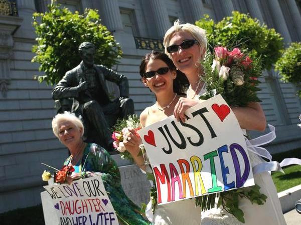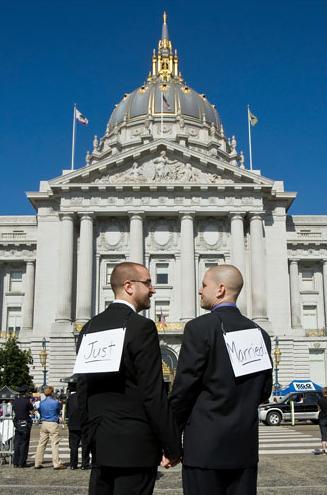 在2004年,布希政府聲望最高的時候,也是支持他上台的基督教會最張狂的時候,當時美國好多州都通過了憲法修正案來禁絕同性婚姻(ban same sex marriage),而當年舊金山市政府原本發出的結婚證書,也在一夜間全部失效。2008年5月15日,加州最高法院認定該州憲法禁絕同性婚姻是違憲的,是歧視的,並且在30天後生效。6月17日開始,愛充滿人間……