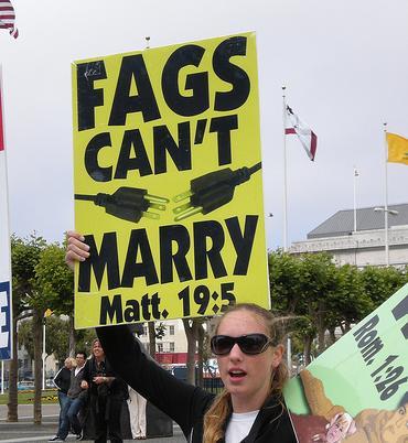 而根據「美國國家廣播電台NPR的新聞報導」,當中提到許多前去示威的基督徒說的話,其中一位基督徒還特別從美國東岸長途跋涉到加州,就為了去對同性戀者們說,上帝會懲罰你們,並且因為你們搞同性戀,上帝會毀滅美國。